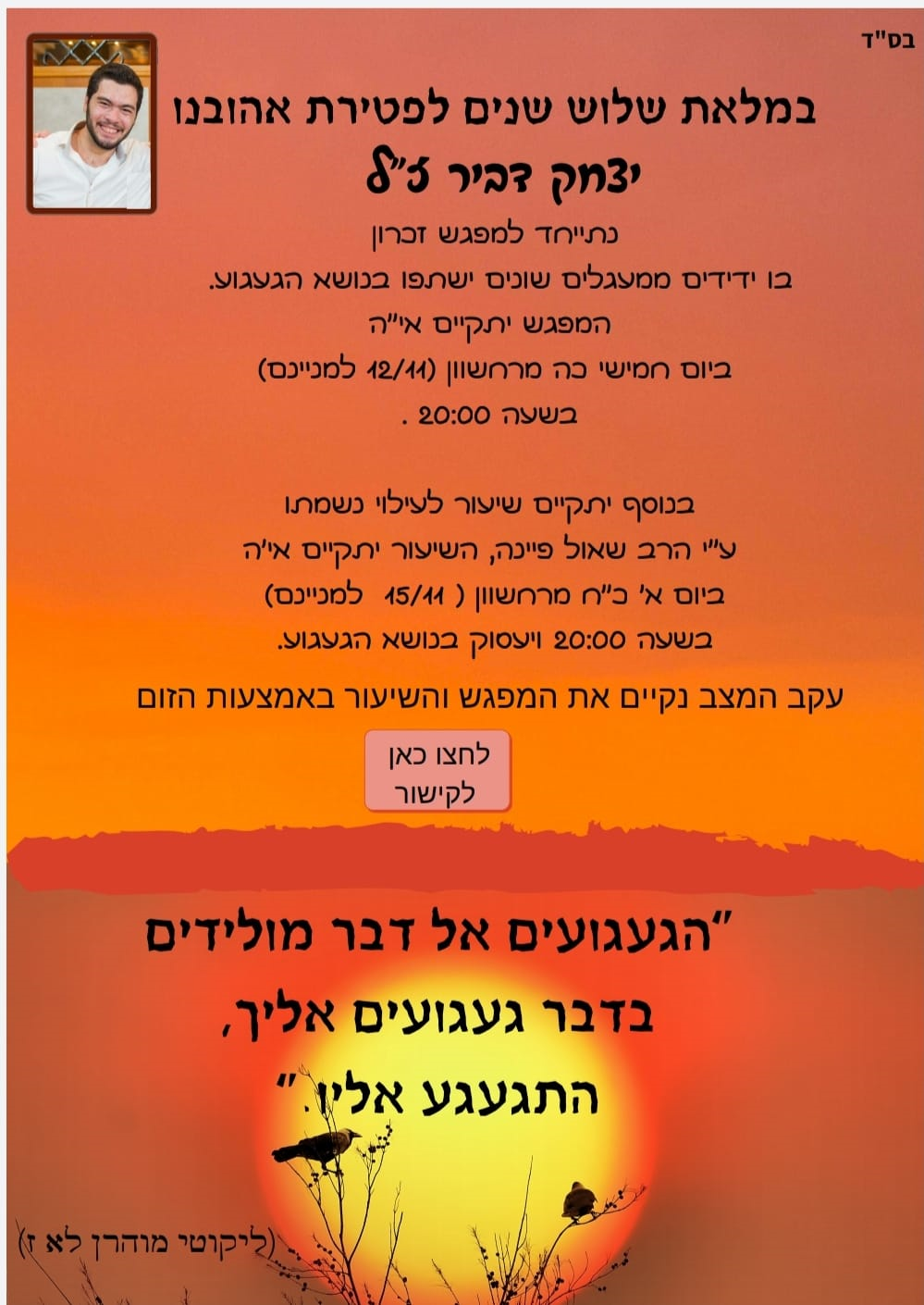 ב-12/11 יתקיים מפגש ההתיחדות עם זכרונו של דביר פיינה, ז"ל.